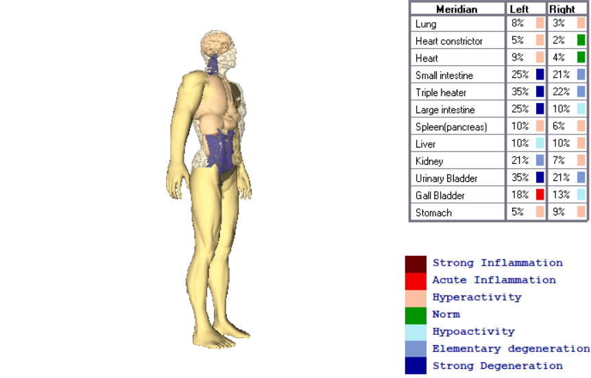 Genom att mäta vissa punkter på de tolv största meridianerna (energi banorna) med ”Ki Flow” får man en serie av elektroimpulser av lågspänningsmotstånd i punkterna som mäts. De informerar vilken energi nivå man har i dagsläget och om det finns över eller underfunktion i meridianen systemet och dess tillhörande system som vävnader, blodkärl, senor, muskler, organ, autonoma nervsystemet, metabolismen (upptag av näringsämnen, matsmältning och utsöndring) även tankar, känslor och upplevelser samt flera funktioner.